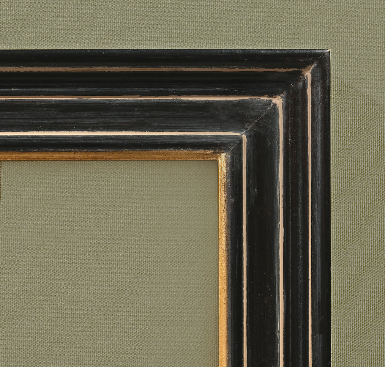 All wood, cut and joined closed corner frame. Rustic, warm gold finish.