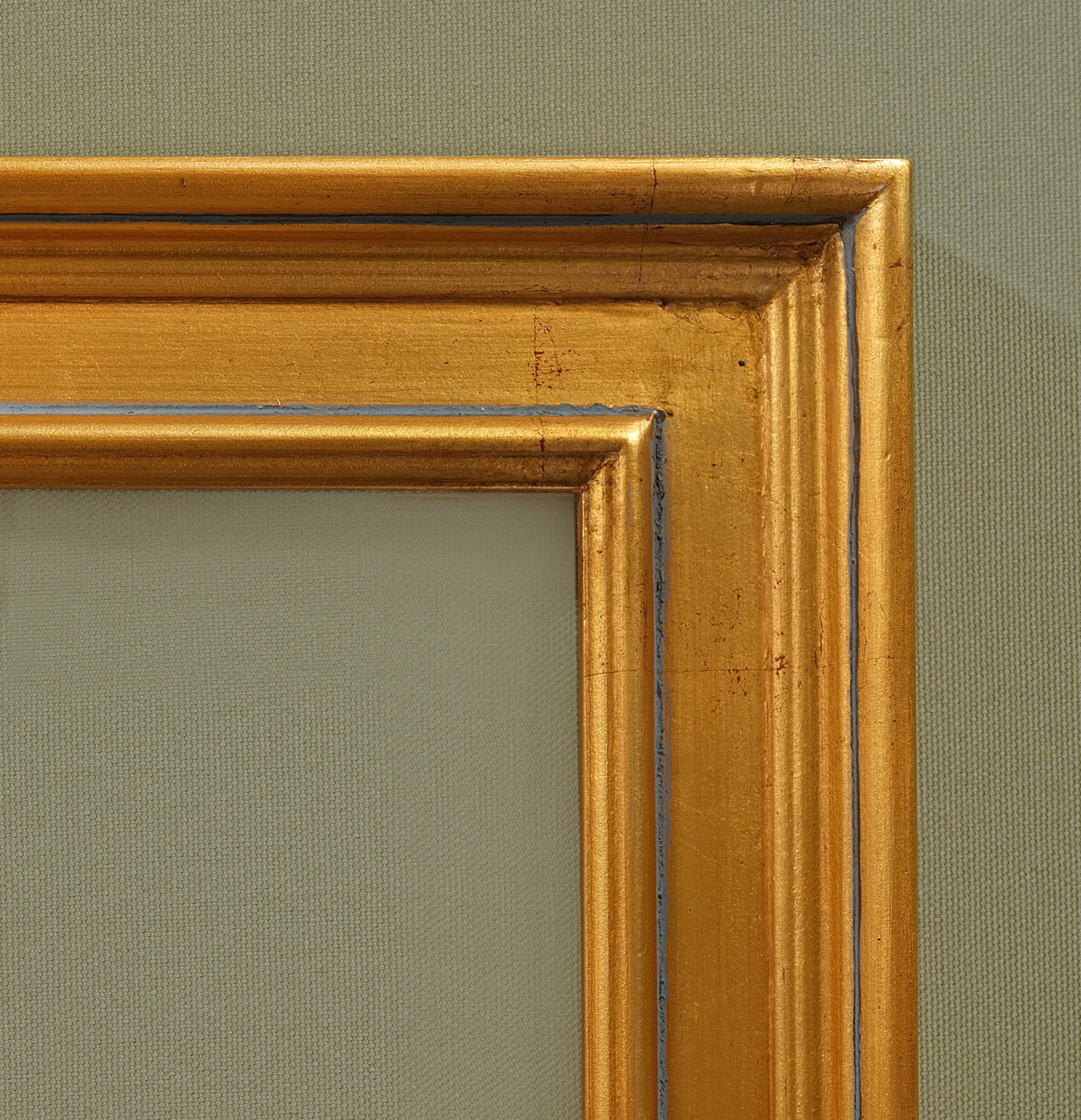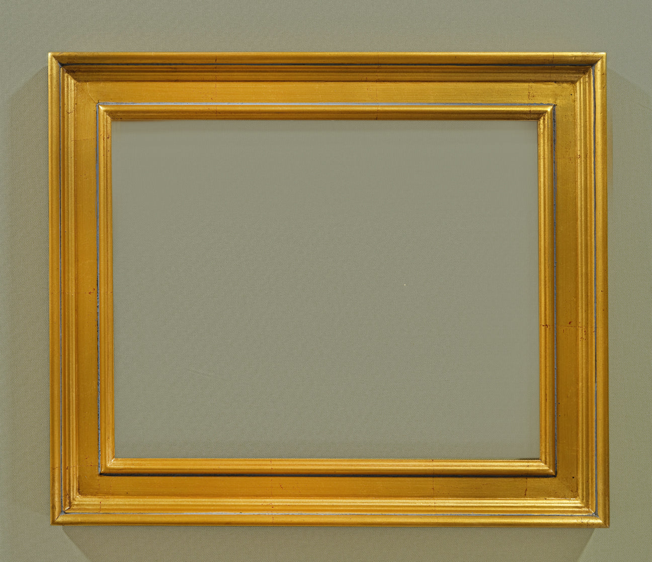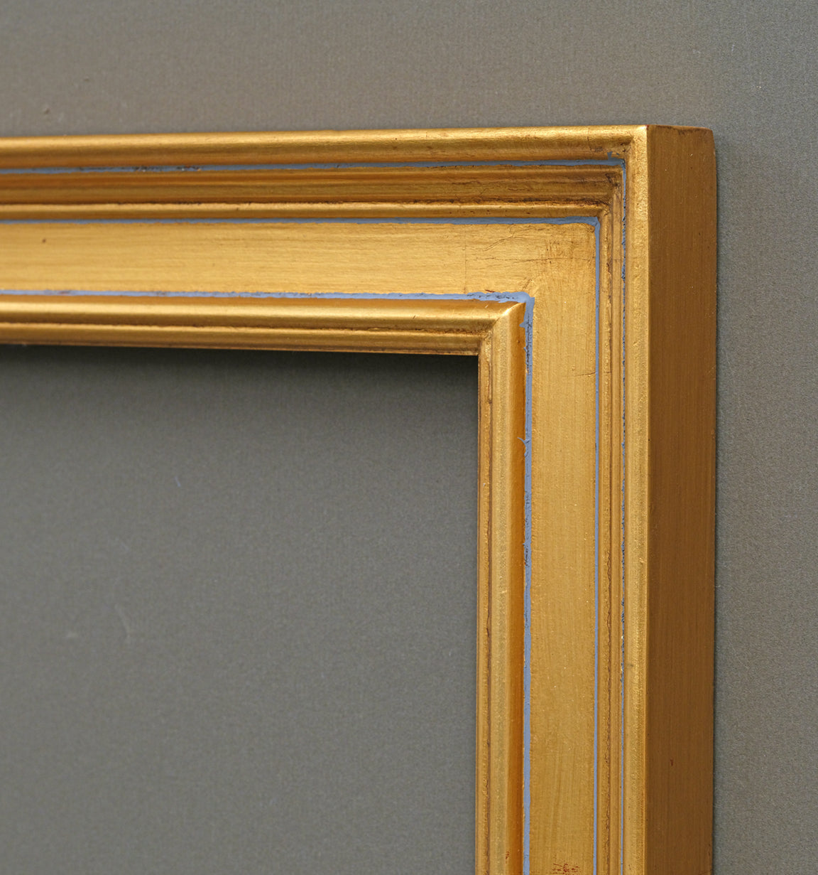 All wood, cut and joined closed corner frame. Rustic, warm gold finish.